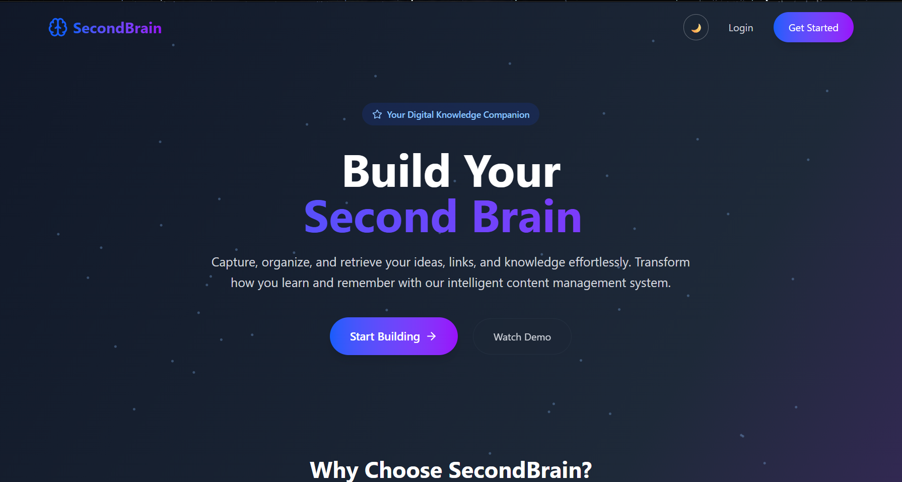 Full-stack knowledge management app with JWT authentication, content saving, protected routes, and automatic token refresh. Built using React (Vite), Tailwind, Express, and MongoDB.
